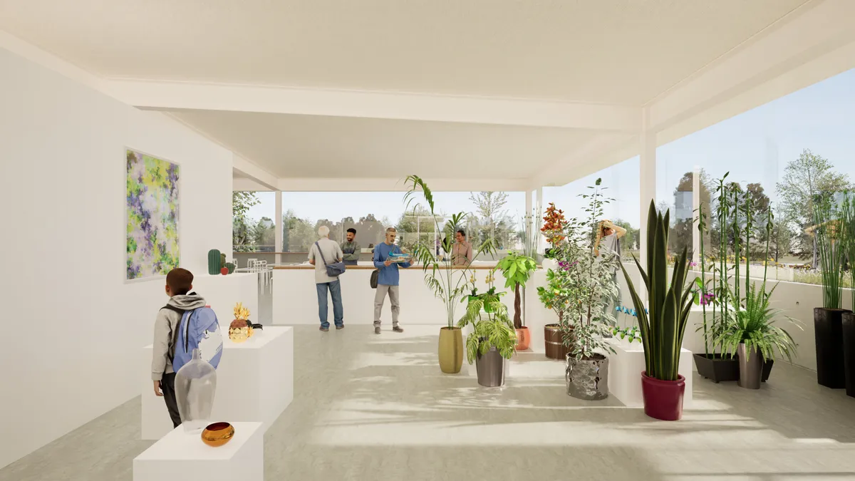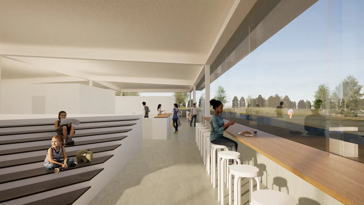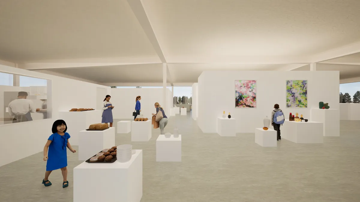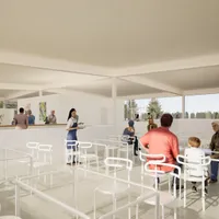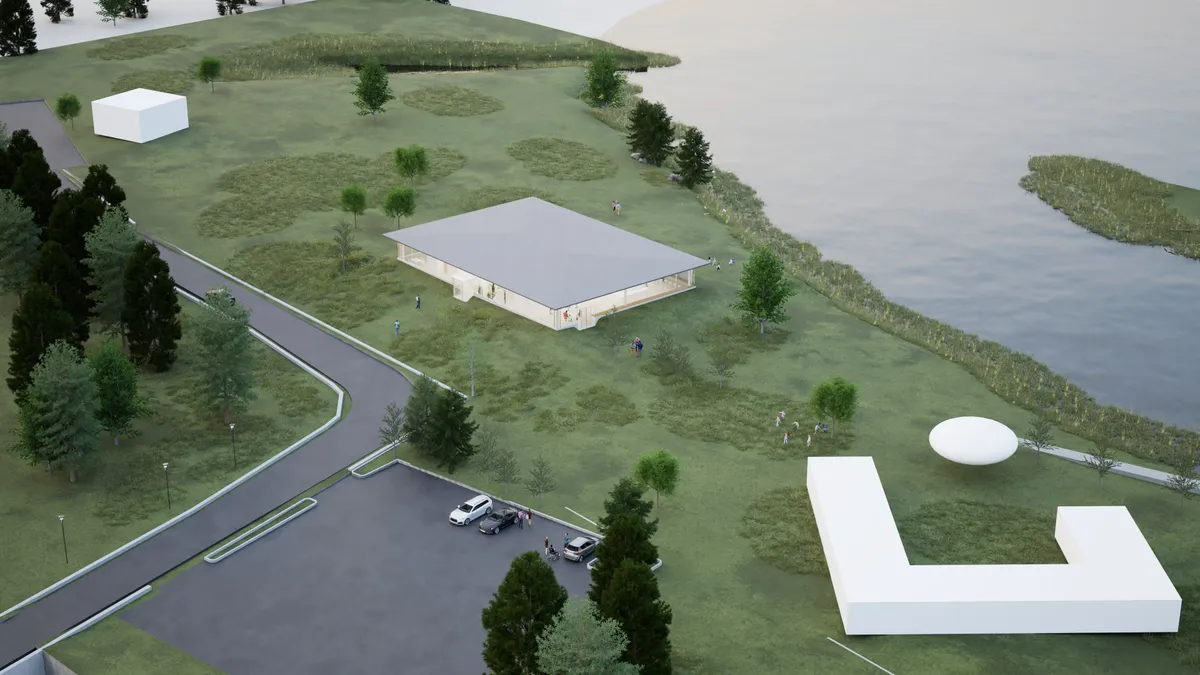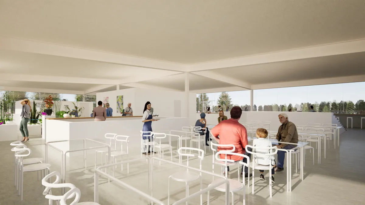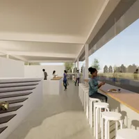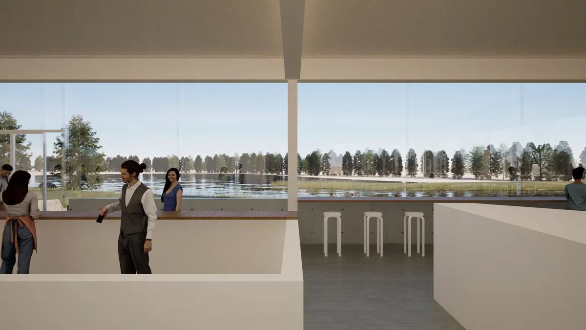 本計画では、この貴重な自然環境と歴史的文脈を踏まえ、低層建築を中心とした構成としながら、広場や余白空間を多く確保することで、来訪者が自由に滞在し、自然と関わることのできる場のあり方を提案しました。また、ギャラリー、カフェ、レストラン、マルシェなど多様な機能が緩やかに共存する計画とし、地域の新たな交流拠点となることを目指しています。