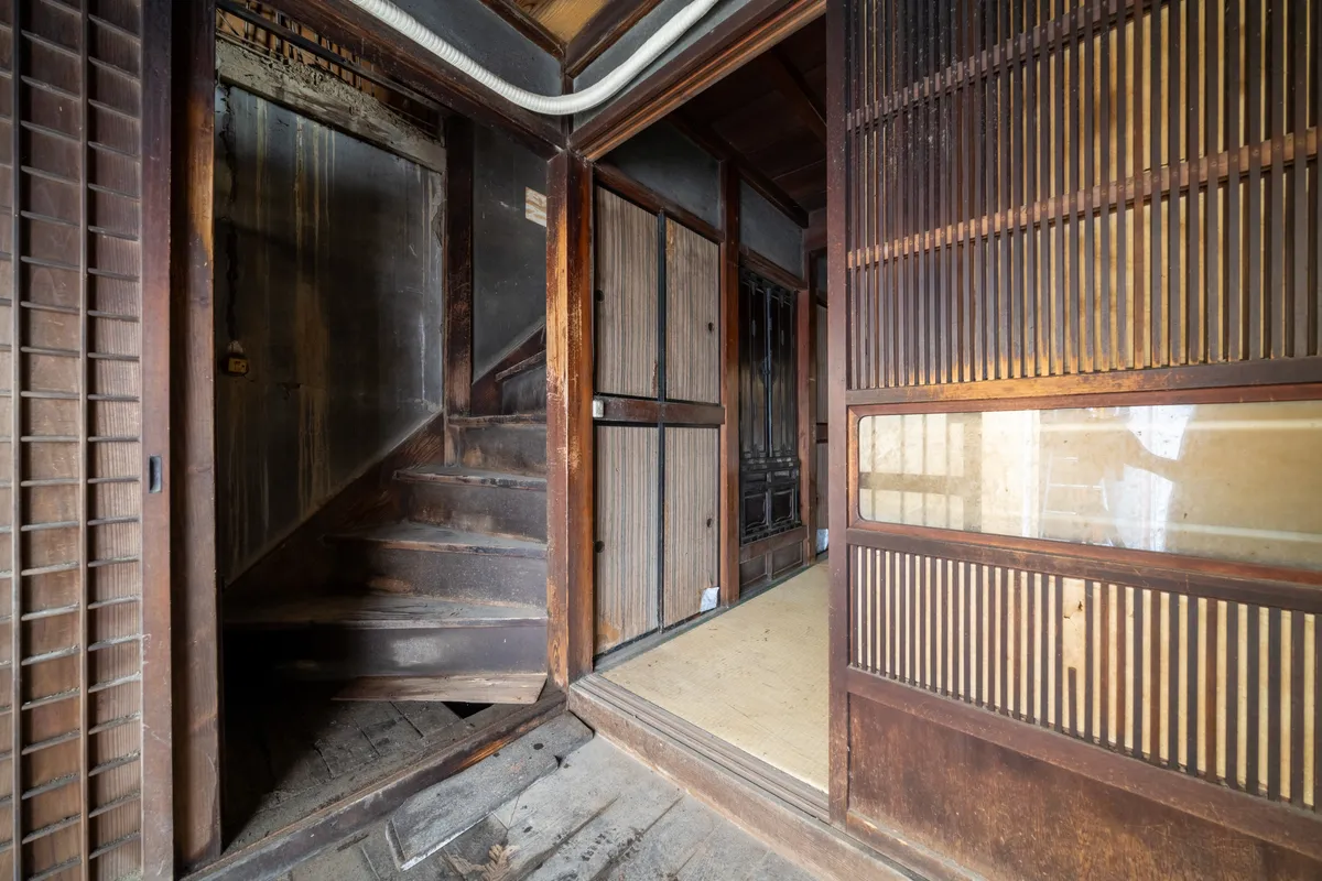 本建物は、大正元年(1912年)頃の竣工と推定されており、震災以前の佃の住居形式を現在に伝える希少な事例です。埋立地として開発された月島・佃島周辺では、通りに面する表長屋は早くから二階建が普及していた一方で、路地に面する裏長屋は平家が一般的でした。二階建の裏長屋が広く見られるようになるのは関東大震災後の昭和初期とされており、本建物はそれに先行する二階建・二軒長屋の一棟である点に特徴があります。現状の住戸は、その後の改修を経て戸建住宅として使われてきたものと考えられます。
