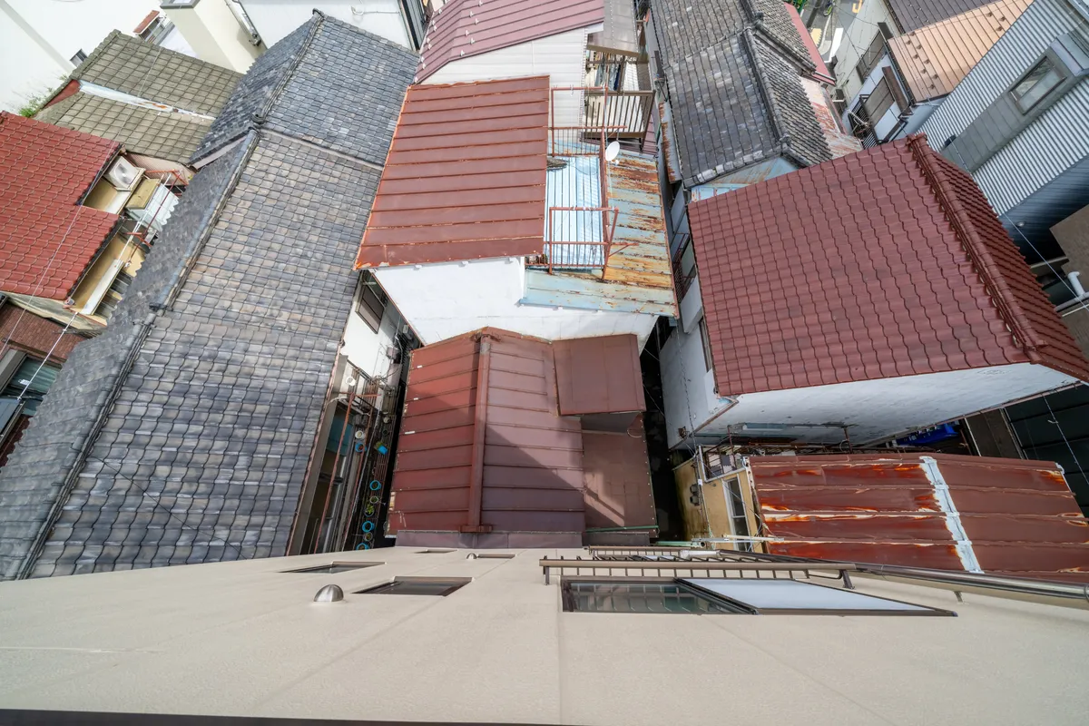 また、隣家に接する外壁側は外部からの改修が困難であるため、内部側に設備・断熱・新設開口を組み込むかたちで壁をふかしつつ、足元は可能な限り薄く抑える計画としました。これにより、一階は内部にいながらも路地の延長にいるかのような、都市的で連続性のある空間が生まれています。特に、路地に開かれた建物の在り方や、内外の曖昧な関係性を活かしながら、現代の居住環境としての快適性も両立させています。